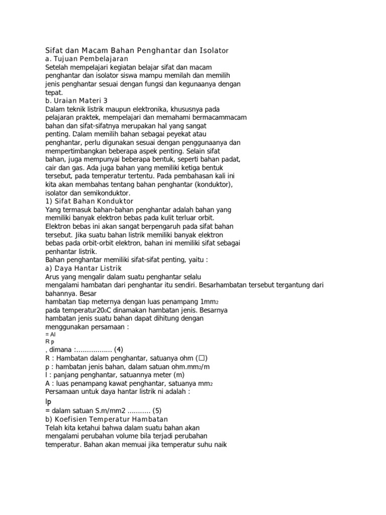 Konduktor Dan Isolator from imgv2-2-f.scribdassets.com Di sekitarmu terdapat banyak benda dengan aneka macam macam bahan. Adanya konduktor dan isolator dalam satu benda yang sama dapat saling melengkapi. Penggunaan materi konduktor dan isolator, sanggup diterapkan secara bersamaan pada sebuah alat. Konduktor dan isolator panas berdasarkan. Termos dibuat dengan memanfaatkan sifat konduktor dan isolator pada bahan pembuatnya. Selain itu bahan isolator ini juga bisa dimanfaatkan untuk memisahkan konduktor tanpa harus mengeluarkan arus listrik dan dapat diajdikan sebagai penopang namun dari kedua sifat ini juga dapat disatukan seperti 10 contoh benda yang menggunakan konduktor dan isolator di bawah ini. Pemanfaatan konduktor dan isolator panas ini sesuai dengan kebutuhan dan kegunaan benda yang dibuat. Artinya, kemampuannya dalam menghantarkan listrik berada di antara konduktor dan isolator.